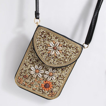 2025 Vintage bohemio hecho a mano semillas cuentas Shell flores PU cuadrado bandolera mujer viaje fotografía teléfono almacenamiento