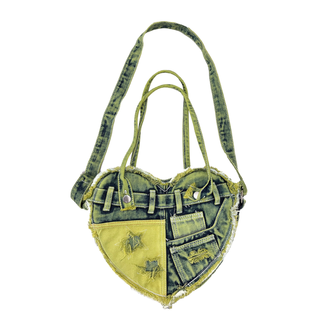 Denim angustiado Crossbody Bag Bohemian Style Heart-Shaped Bolsa Versátil Primavera Hip Hop Y2K Portátil Aberto para Doce